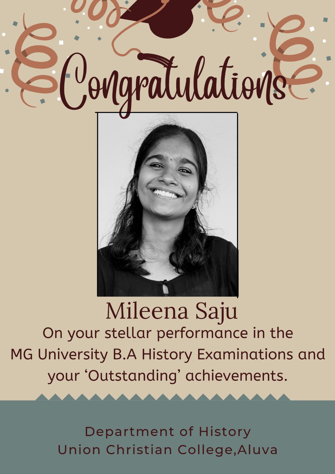 Congratulations Mileena Saju whose ‘Outstanding” performance (more than 90%) in most of the semesters makes us proud.