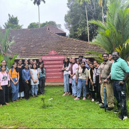 On 26 September 2025, students visited the Pattanam archaeological site in Kodungallur as part of their study tour under the guidance of Dr. H. G. Das and Mr. A. Augustine. They explored the ancient port city of Muziris and learned about its role in Indo-Roman trade. Resource persons at the site provided detailed explanations about the ongoing excavations and the Cosmos Malabaricus Project, which aims to trace Kerala’s cultural and historical links. The students observed artifacts and trade materials, connecting their classroom knowledge with tangible historical evidence, thereby deepening their appreciation for Kerala’s heritage and global connections.